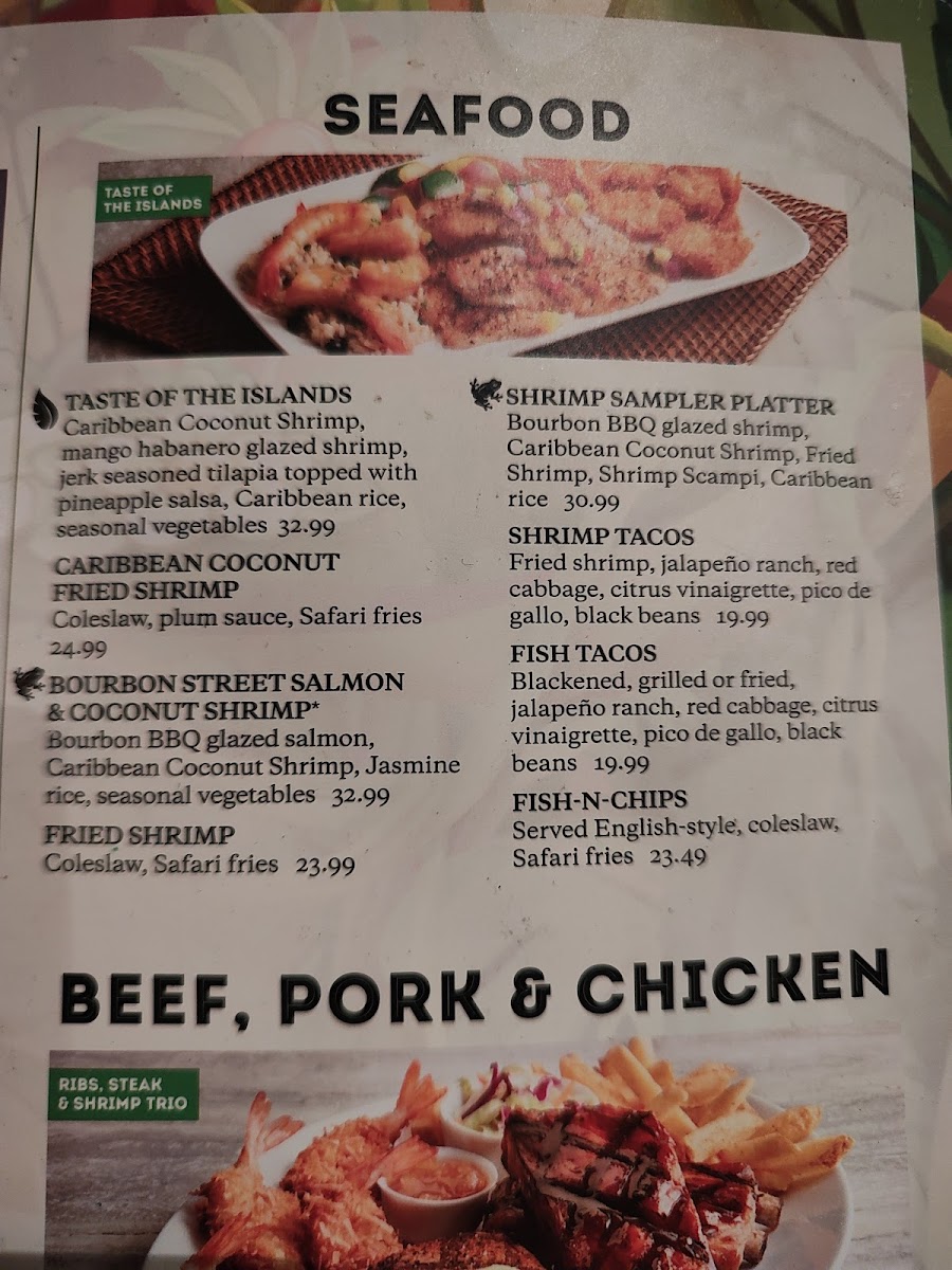 The signature dishes include the Primal Steak, a charbroiled USDA choice NY strip, and the tantalizing Ribs, Steak & Shrimp Trio, marrying tender ribs with Caribbean Coconut Shrimp. Not to be missed are the delightful Bombay Chicken and Shrimp, stir-fried to perfection in a spicy curry sauce, catering to adventurous palates.