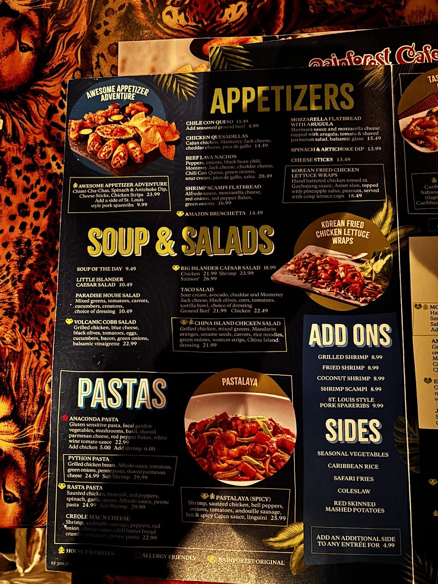 Dessert lovers will revel in the Sparkling Volcano, a towering chocolate brownie cake served warm, lavishly topped with ice cream and sauces. Visitors rave about the friendly staff and vibrant atmosphere that make every meal feel special. Rainforest Cafe - Sunrise is a must-visit for those seeking great food and fun for all ages!